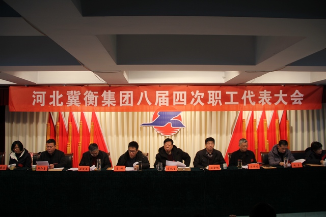 1月11日上午8時,河北冀衡集團八屆四次職工代表大會在雄壯的國歌聲中拉開序幕,各分子公司和各職能處室121名代表肩負3500名員工的重托齊聚六樓會議室,共謀冀衡發展大計。