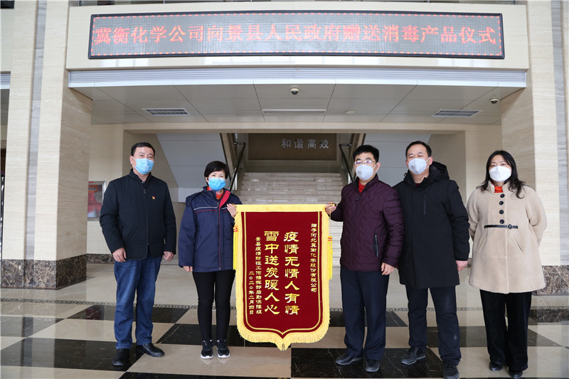 我公司為景縣疫情防控工作指揮部捐贈84消毒液儀式
