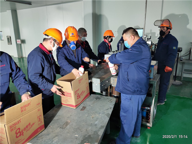 公司黨員突擊隊(duì)在84消毒液生產(chǎn)現(xiàn)場