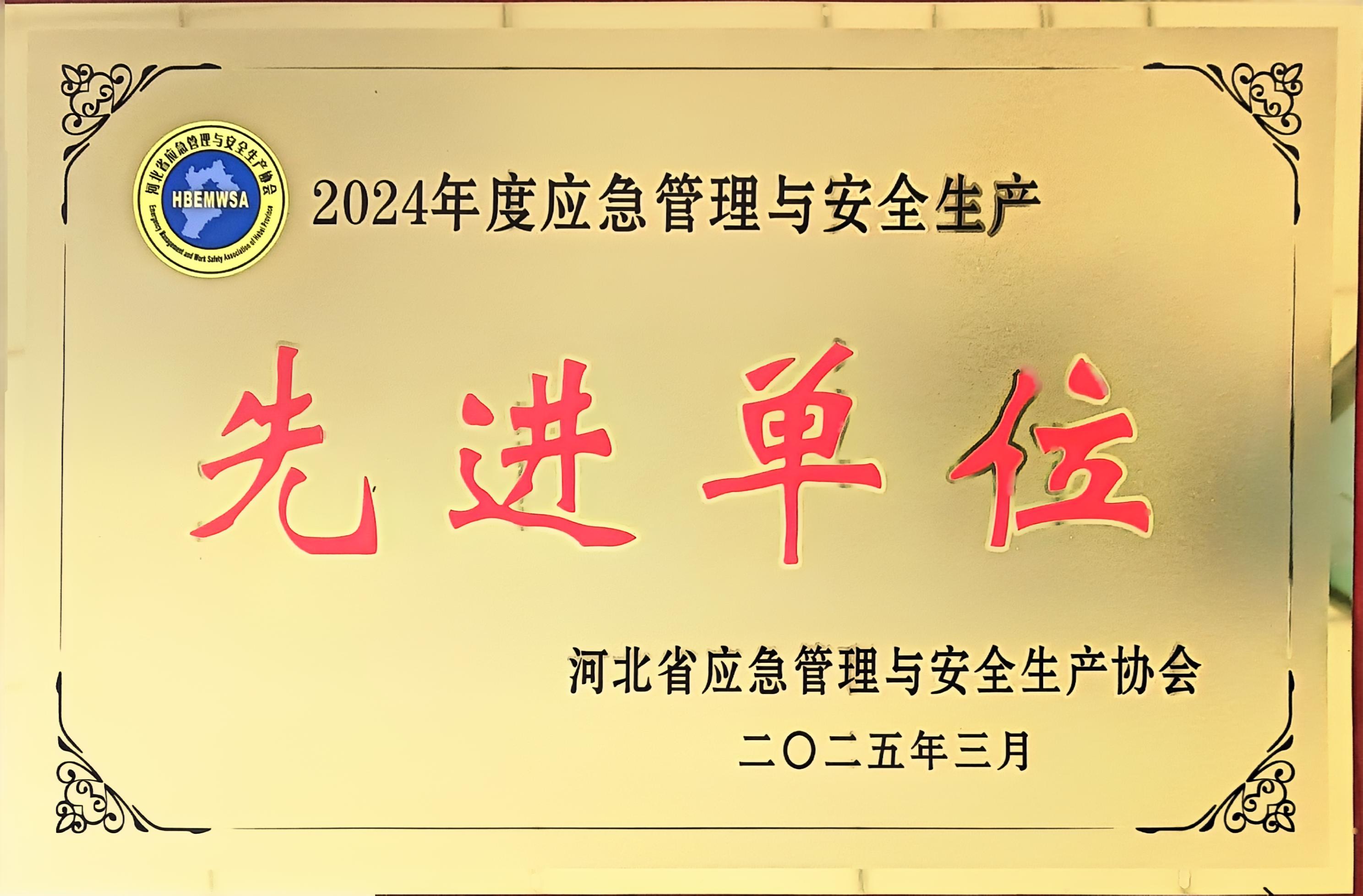 冀衡化學榮獲2024年度應急管理與安全生產先進單位稱號